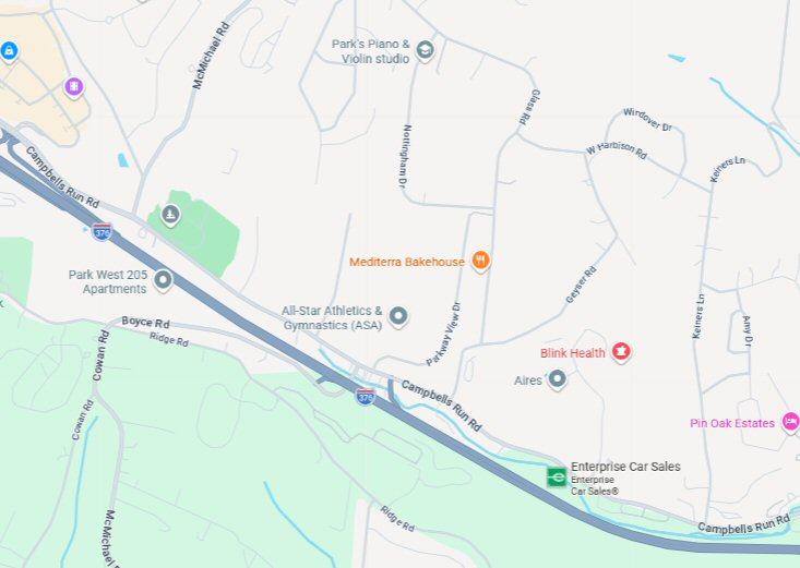 Throughout the project, eastbound/inbound travel (from Settlers Ridge/Route 60 towards Carnegie/Pennsbury Village) on Campbells Run Road will always be maintained. Two-way traffic will remain open between Boyce Road and the I-376 West off-ramp (Exit 62). All homes, businesses, and commercial properties in the area will remain accessible.